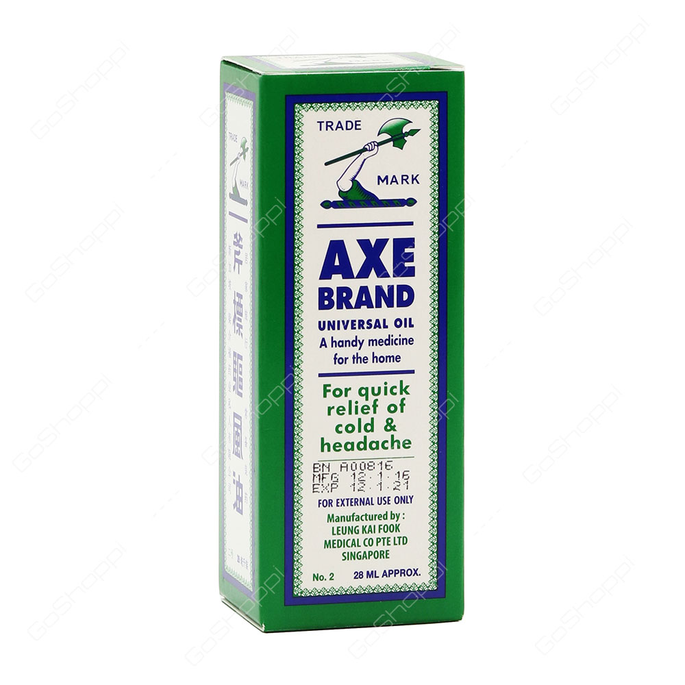 Axe Brand Universal Oil : Axe brand universal oil cold headache muscular pain relief 1.89 fl oz / 56 ml.. Axe brand universal oil is extremely effective in relieving pain and discomfort from colic and stomachache or even swelling, redness and itchiness you can rub axe brand universal oil under your nose to get instant relief from blocked or stuffy nose. Axe brand universal oil (also known as axe brand medicated oil in some countries) is made from a unique formula and has been used throughout the world for. Axe brand universal oil made from a unique formula and has been used throughout the world for over 80 years. In pure color, and not harsh on skin. Axe brand universal oil 3, 5, 10, 14, 28 56ml fast relief cold and headache orig.